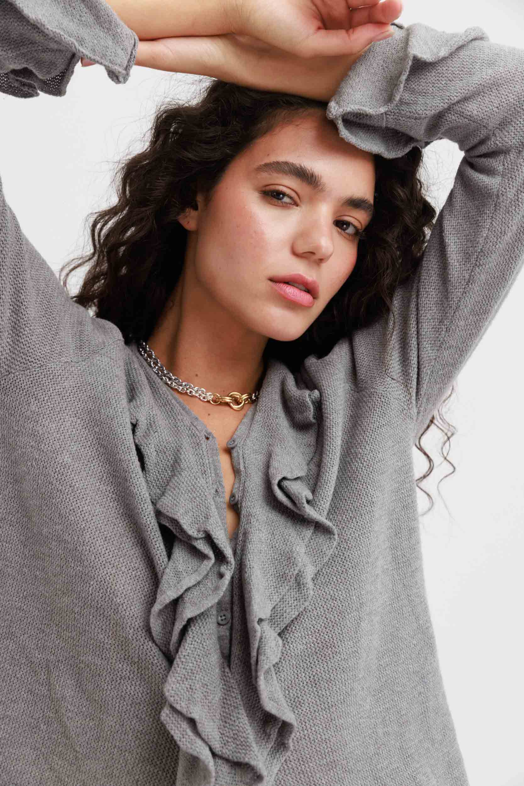קרדיגן סריג דק בגזרת אוברסייז עם רפלסים עדינים לאורך החזית