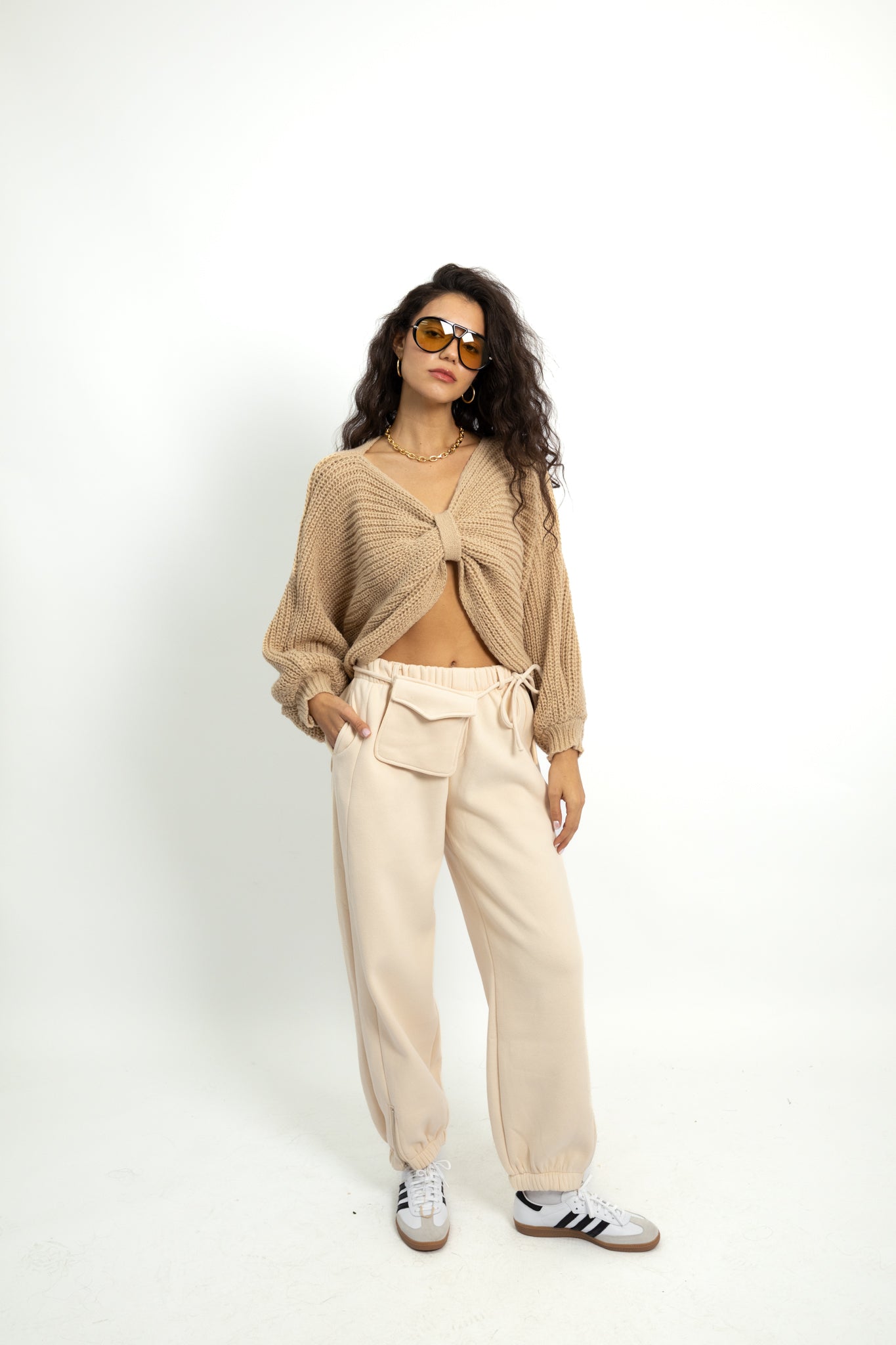 סוודר פפיון קצר במותן עם שרוולים תפוחים