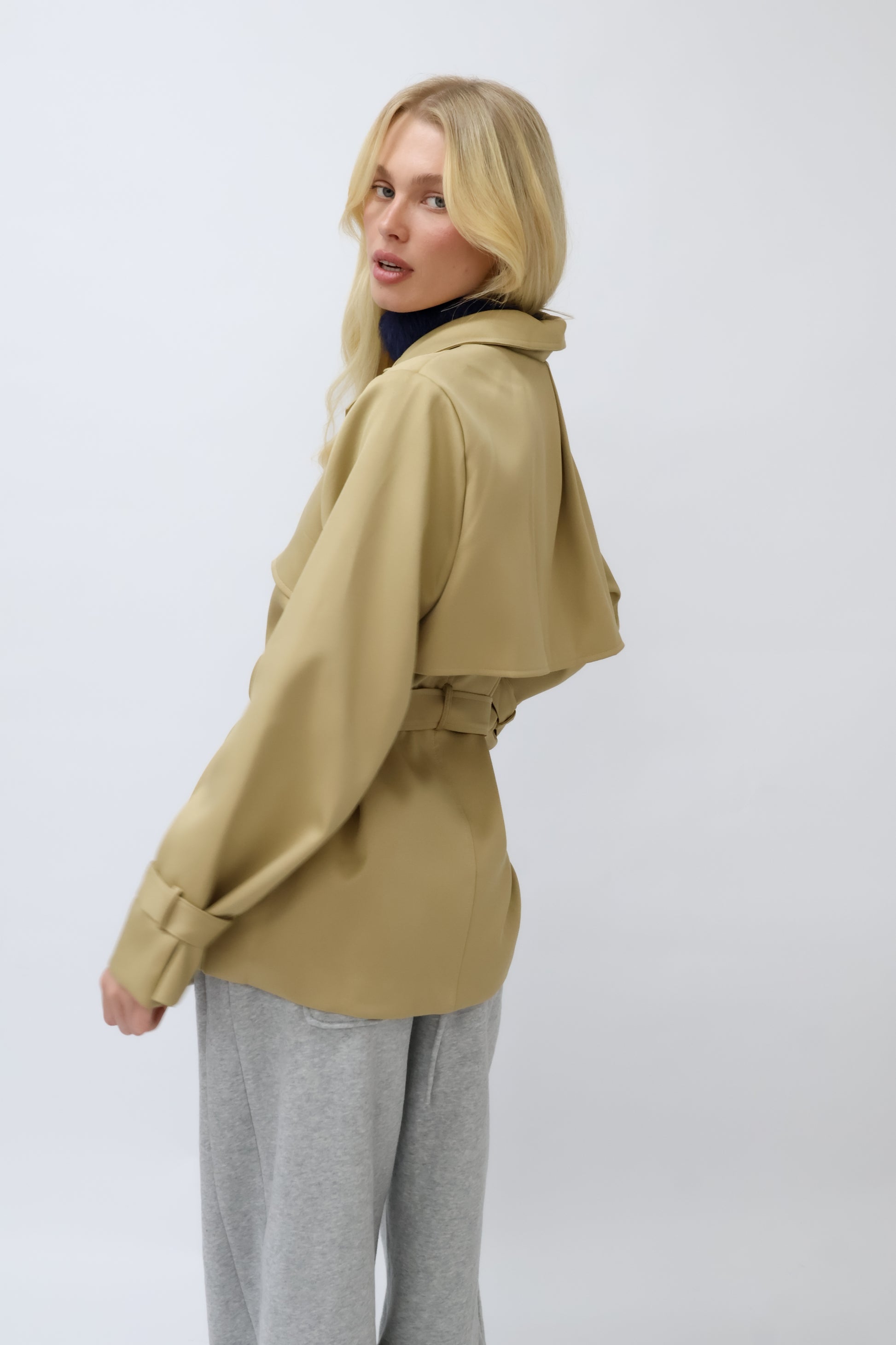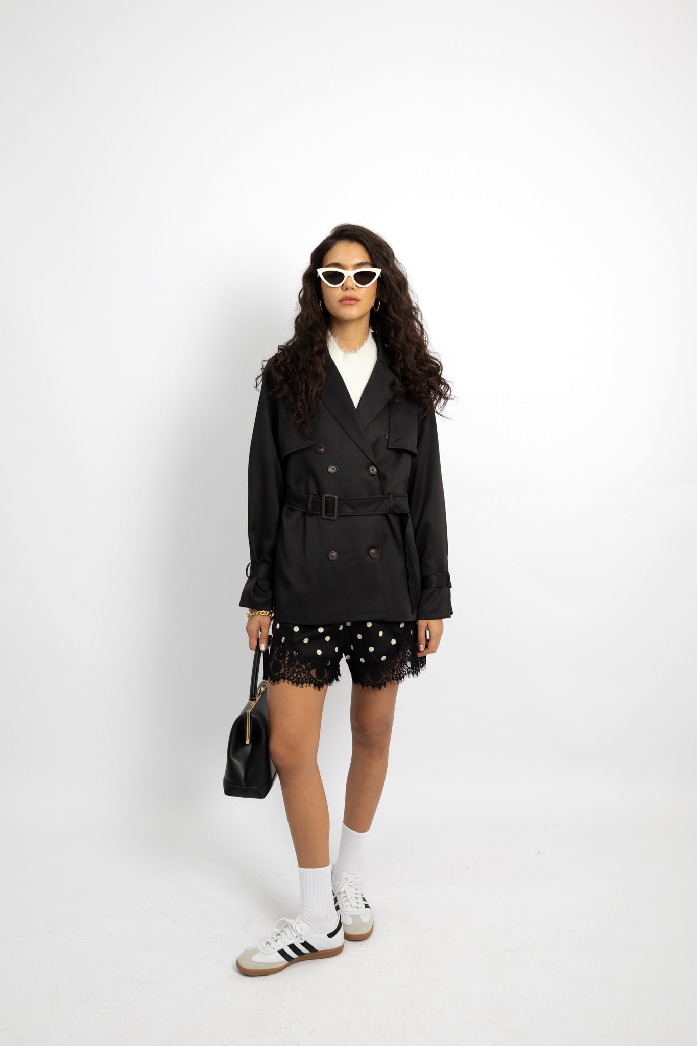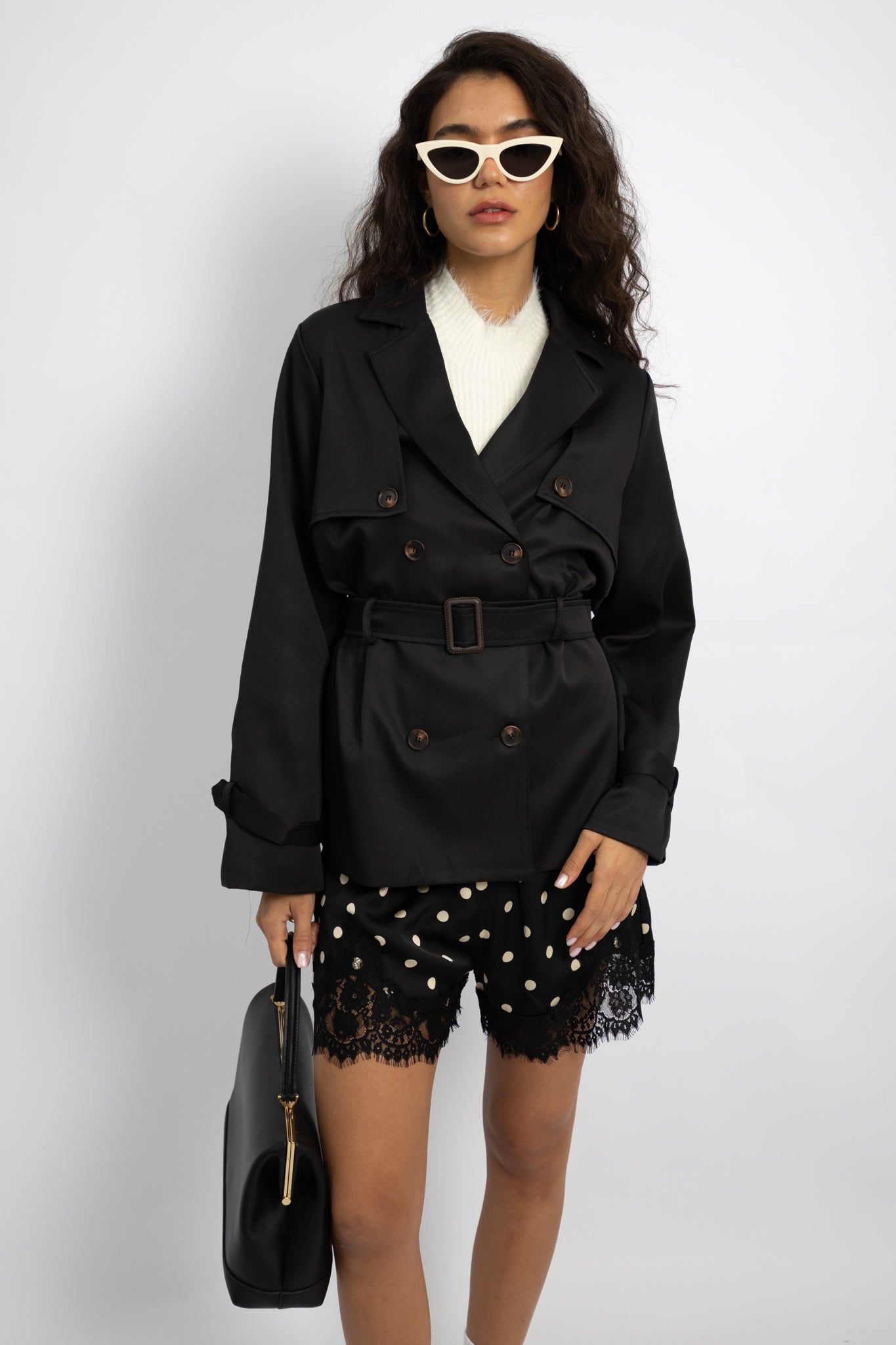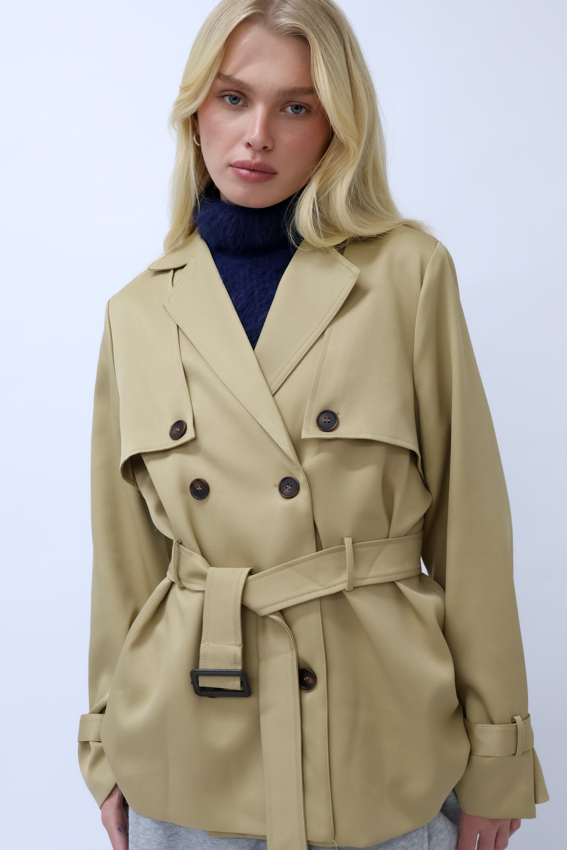 מעיל טרנץ' קצר בגזרת אוברסייז עם חגורת קשירה