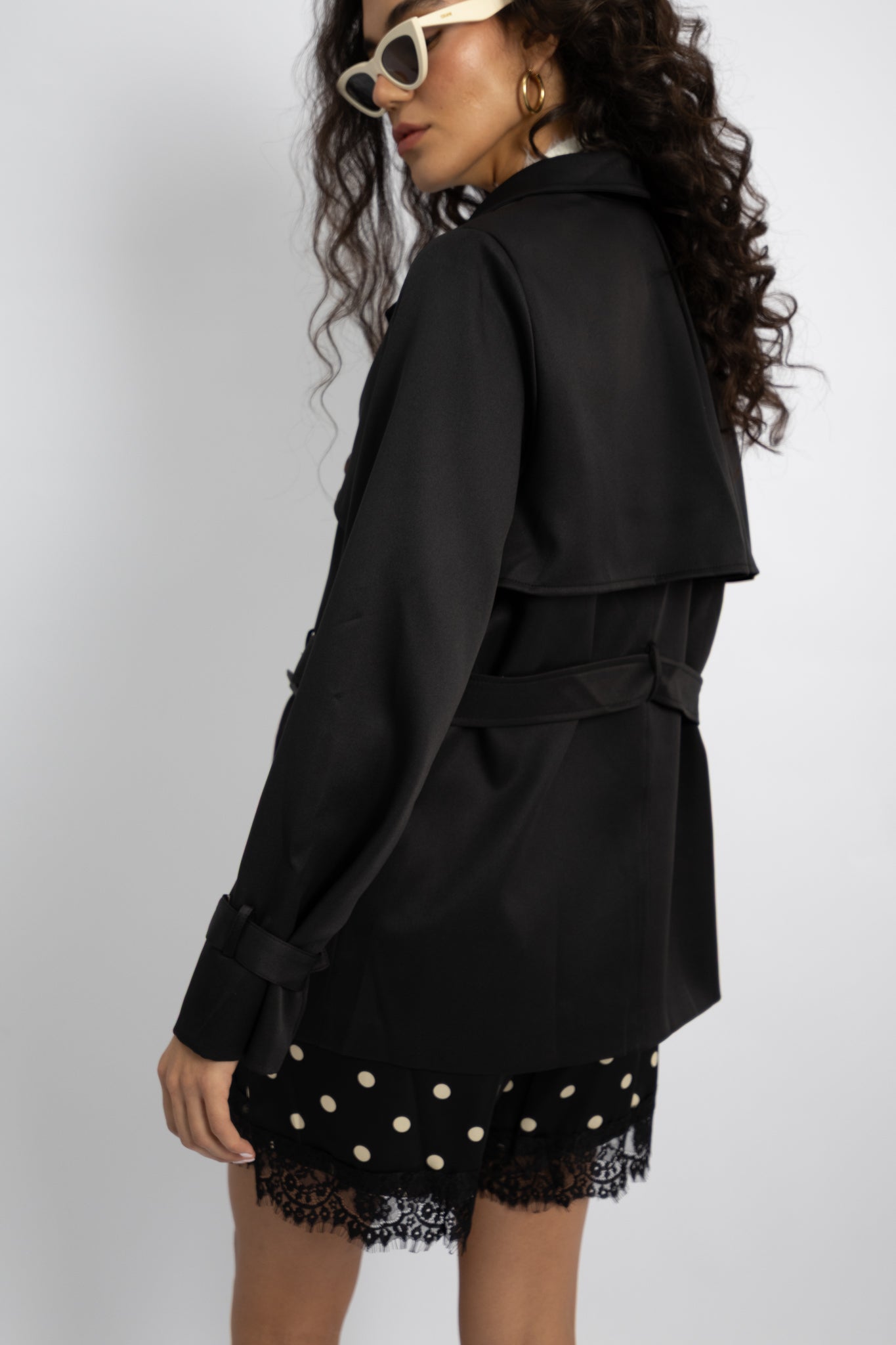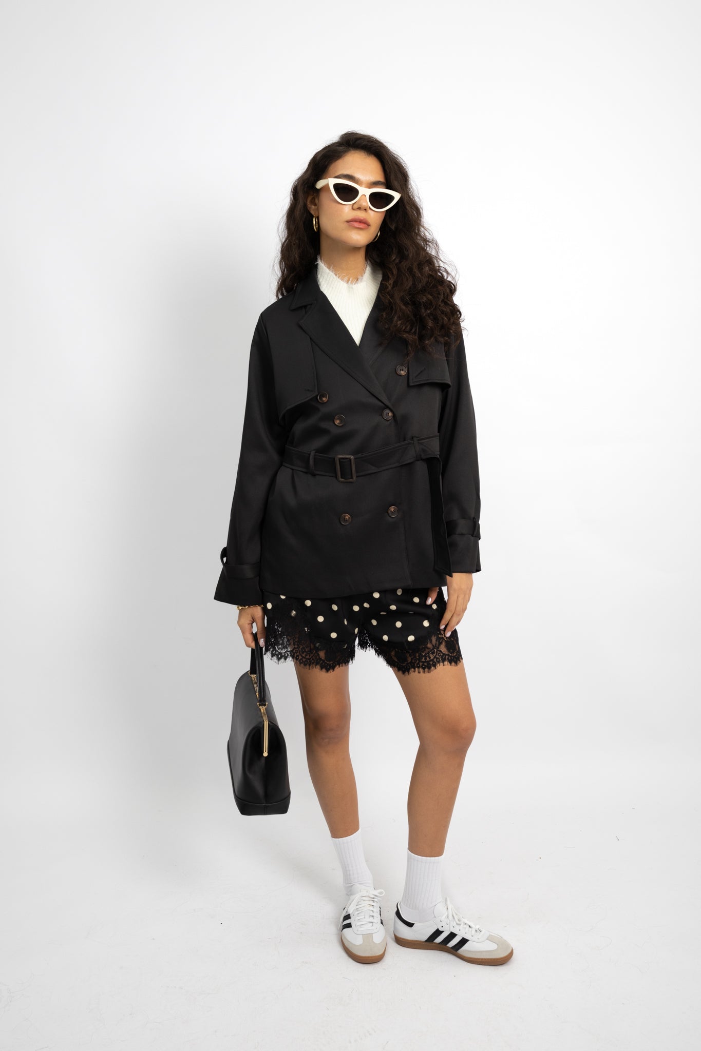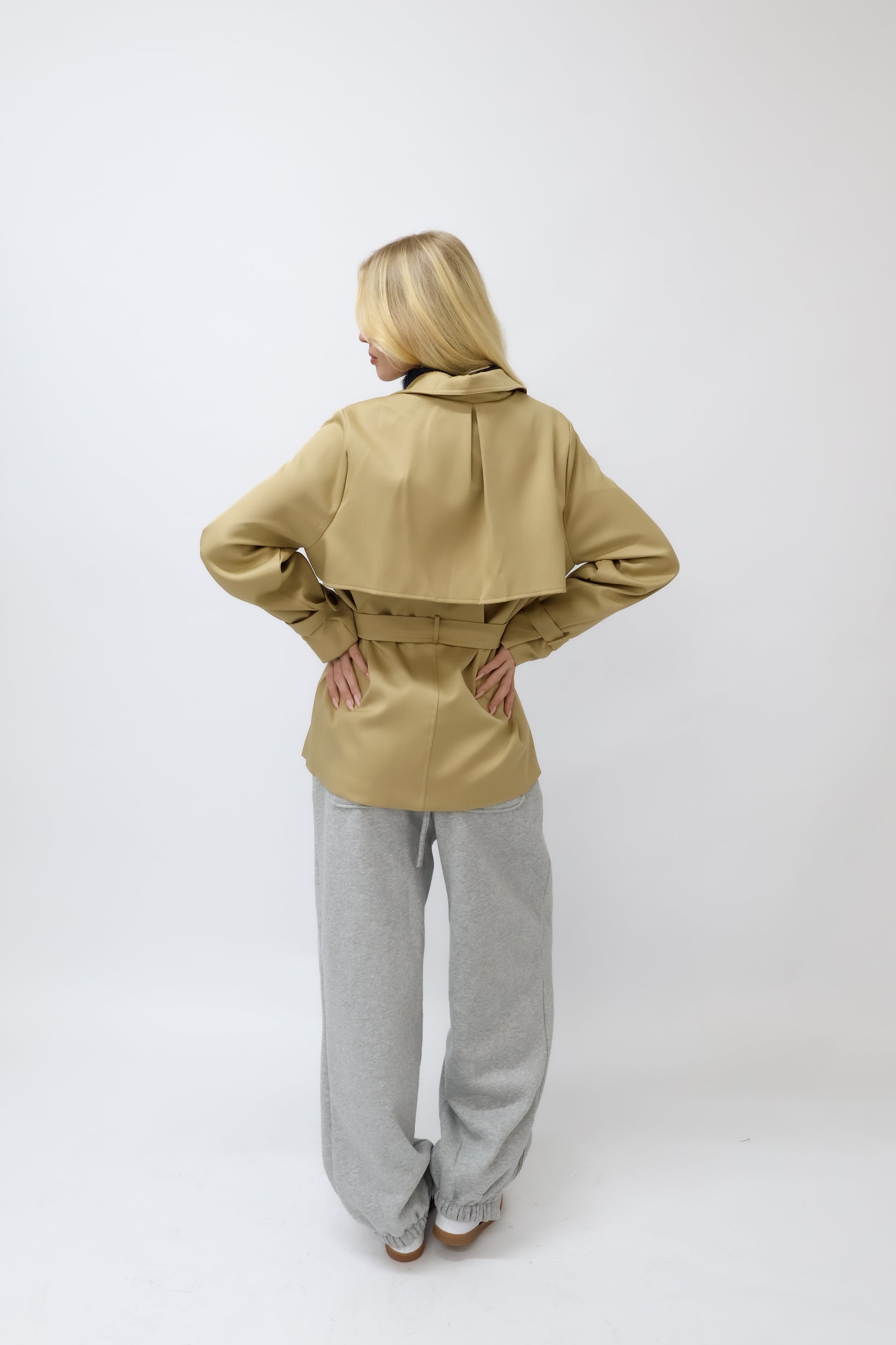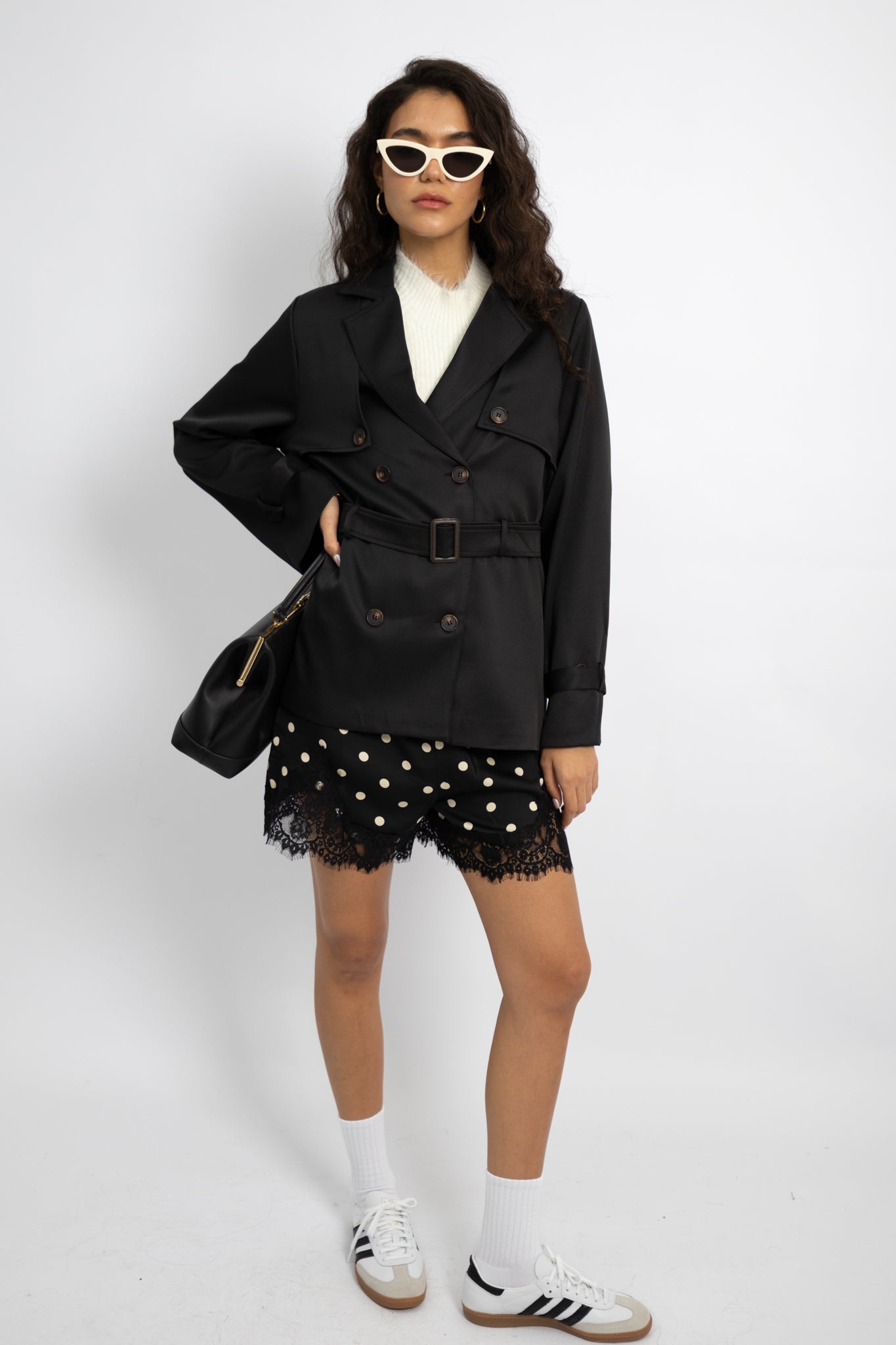 מעיל טרנץ' קצר בגזרת אוברסייז עם חגורת קשירה